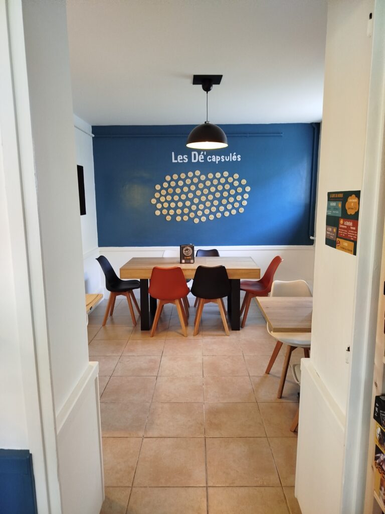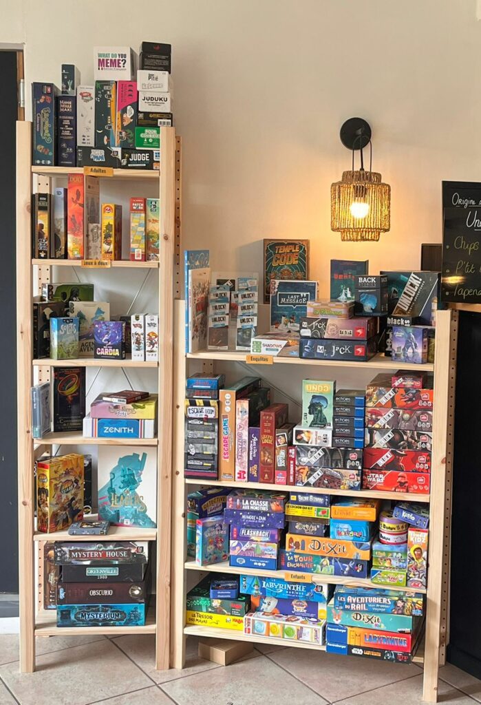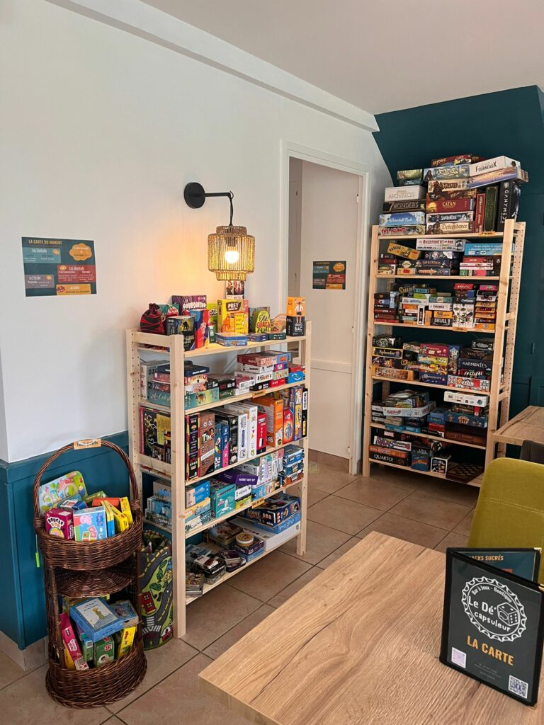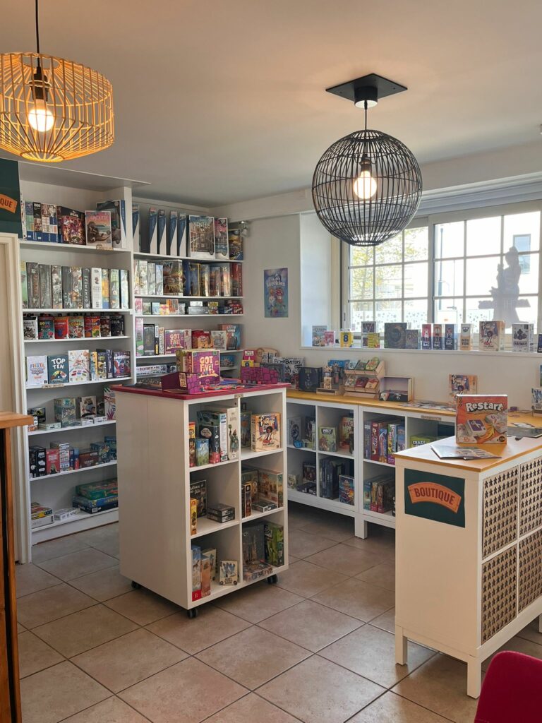 Galerie Notre espace Boutique ! Notre Ludothèque La suite de notre ludothèque ! Alexandre et Anne-Perrine, gérants du Dé’capsuleur